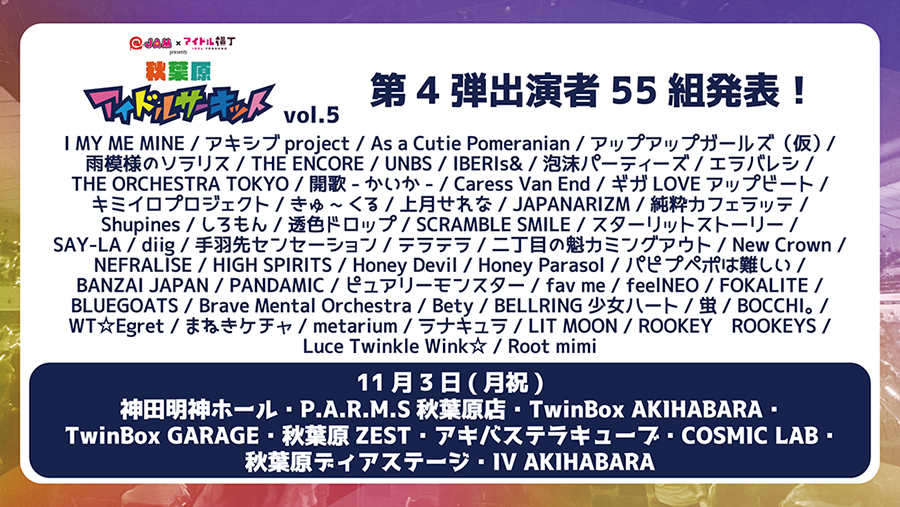 @JAMとアイドル横丁による⼤型サーキットフェス「秋葉原アイドルサーキット vol.5」が今年も開催!