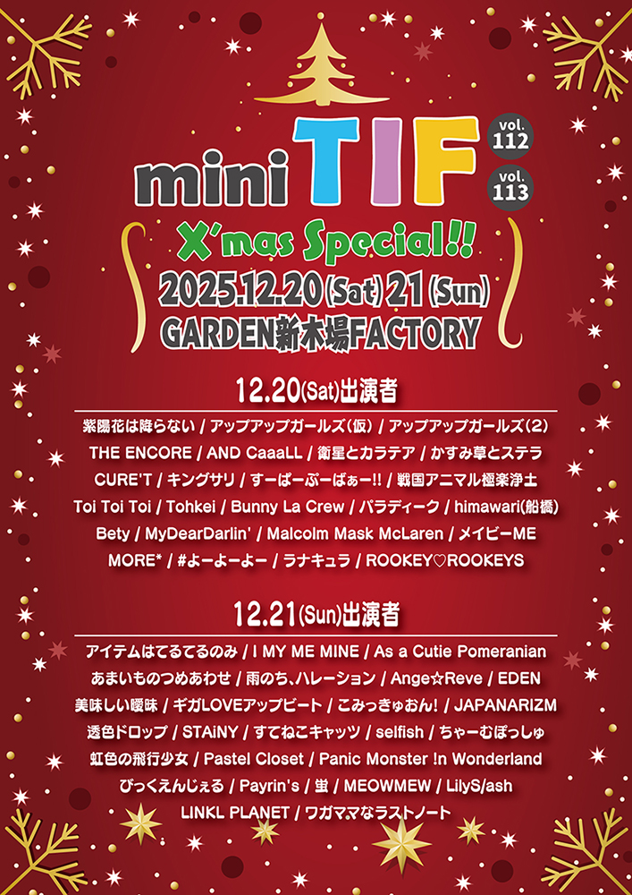 EVENT 【出演情報】『mini TIF vol.112,113「Xmas SP!!」』