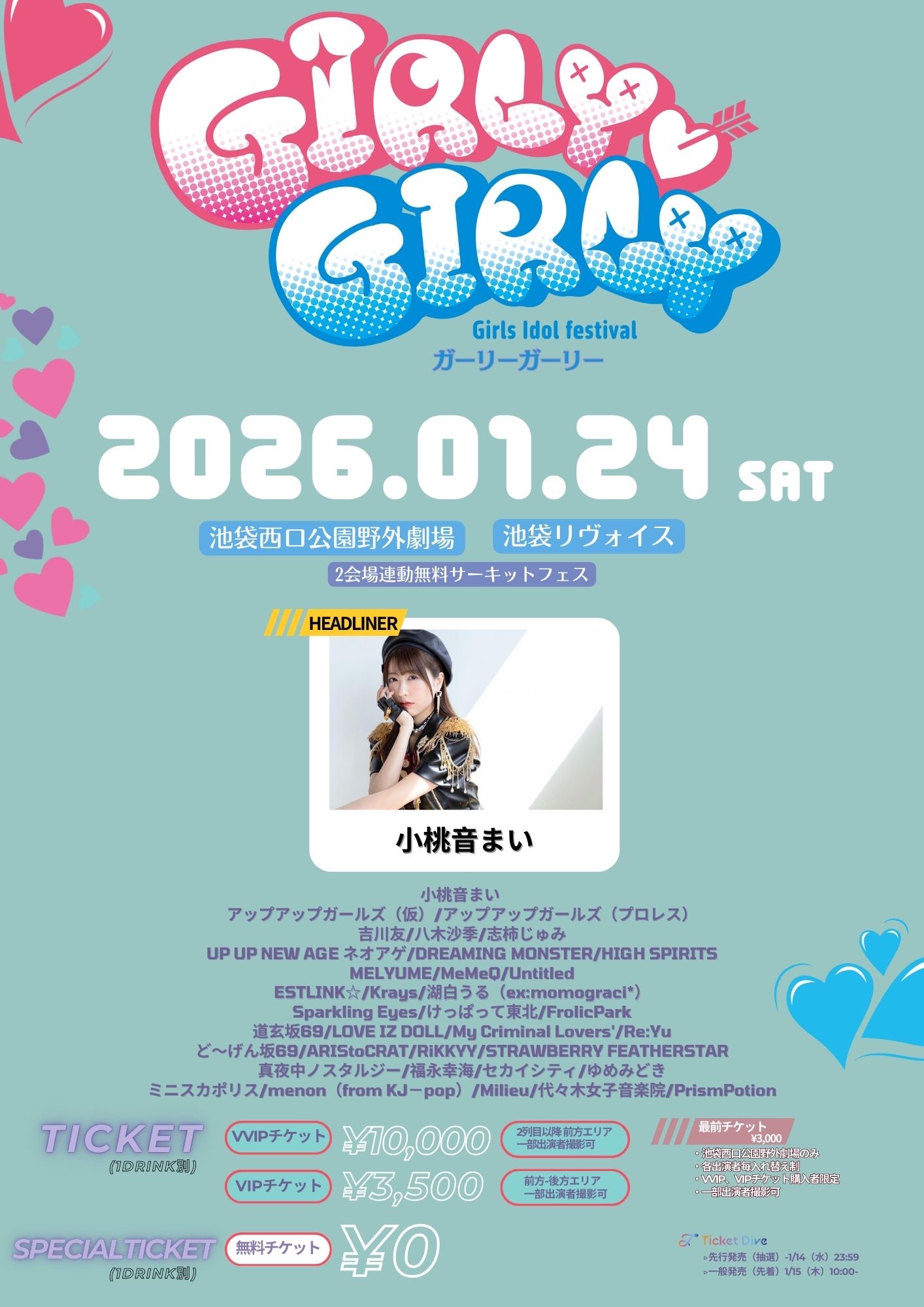 ①VVIPチケット[2列目以降 前方エリア]10,000円 ※一部出演者撮影可